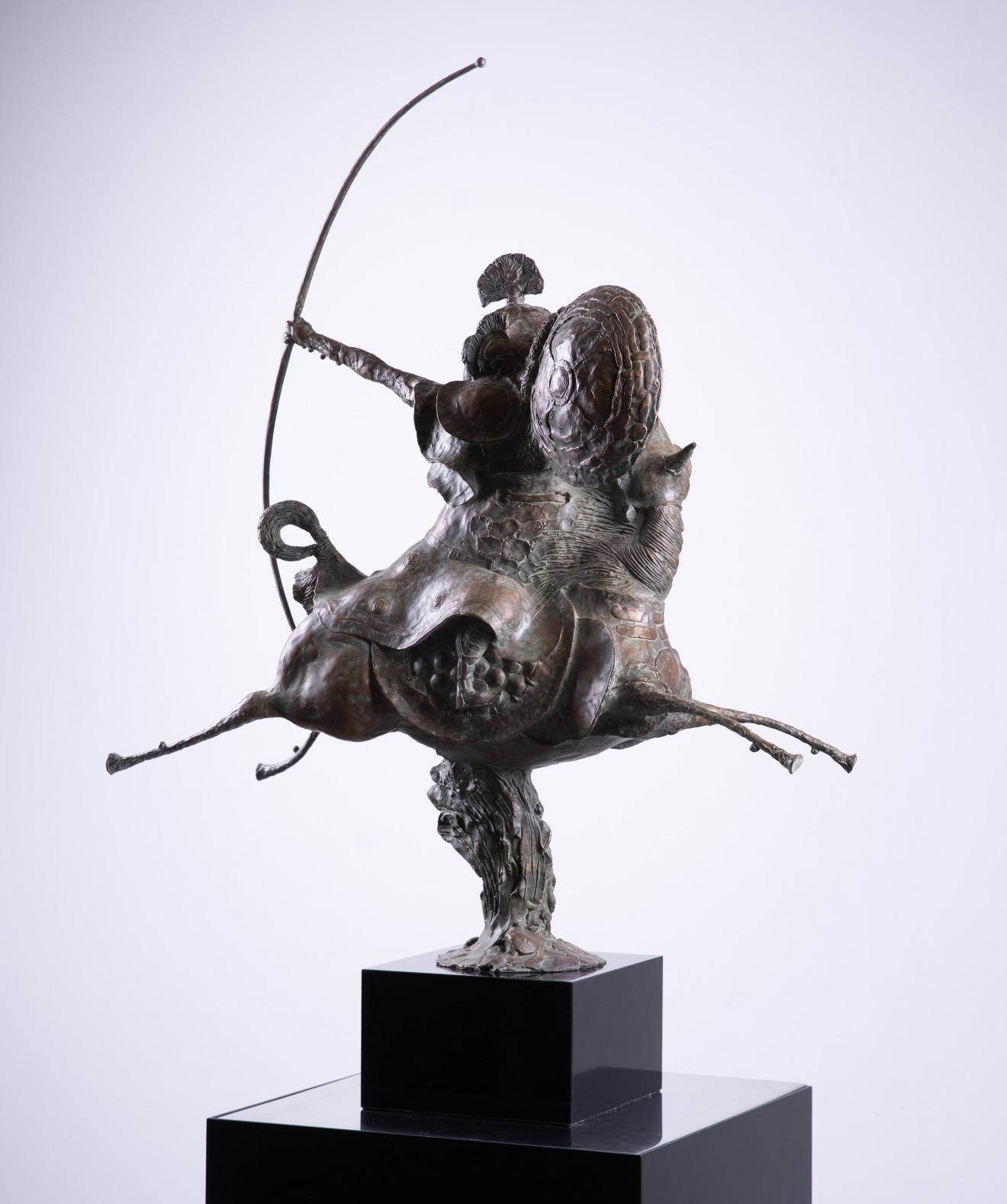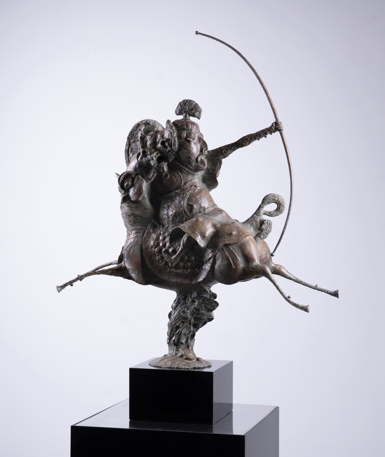 Сюжет сражения, в котором участвует всадник, вооруженный боевым луком, наполнен энергией кульминации боя. Композиция скульптуры построена на противопоставлении фигуры коня в сильном развороте позы и точном рисунке фигуры всадника, готового поразить цель. Легкость и стремительность скачки передана рисунком ног коня, почти «летящего» в пространстве, не касаясь земли.