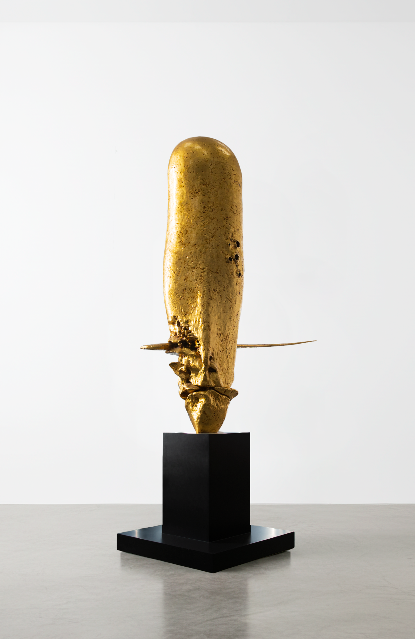 Самородок - это природная форма, осмысленная как произведение искусства. Его антропоморфные очертания, напоминающие архаичную маску или идола, отсылают к древним культовым образам. Через фактуру и пропорции драгоценного металла автор предлагает ощутить вневременную историю земных недр, подчеркивая абсолютную красоту творений природы.